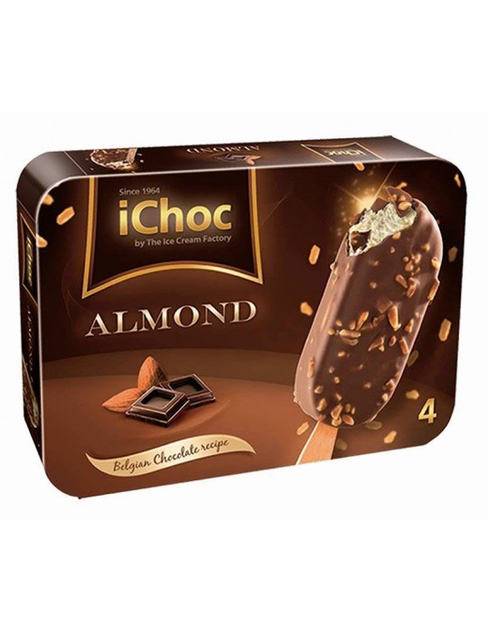 Cuatro deliciosos bombones de vainilla con cobertura de chocolate y almendras